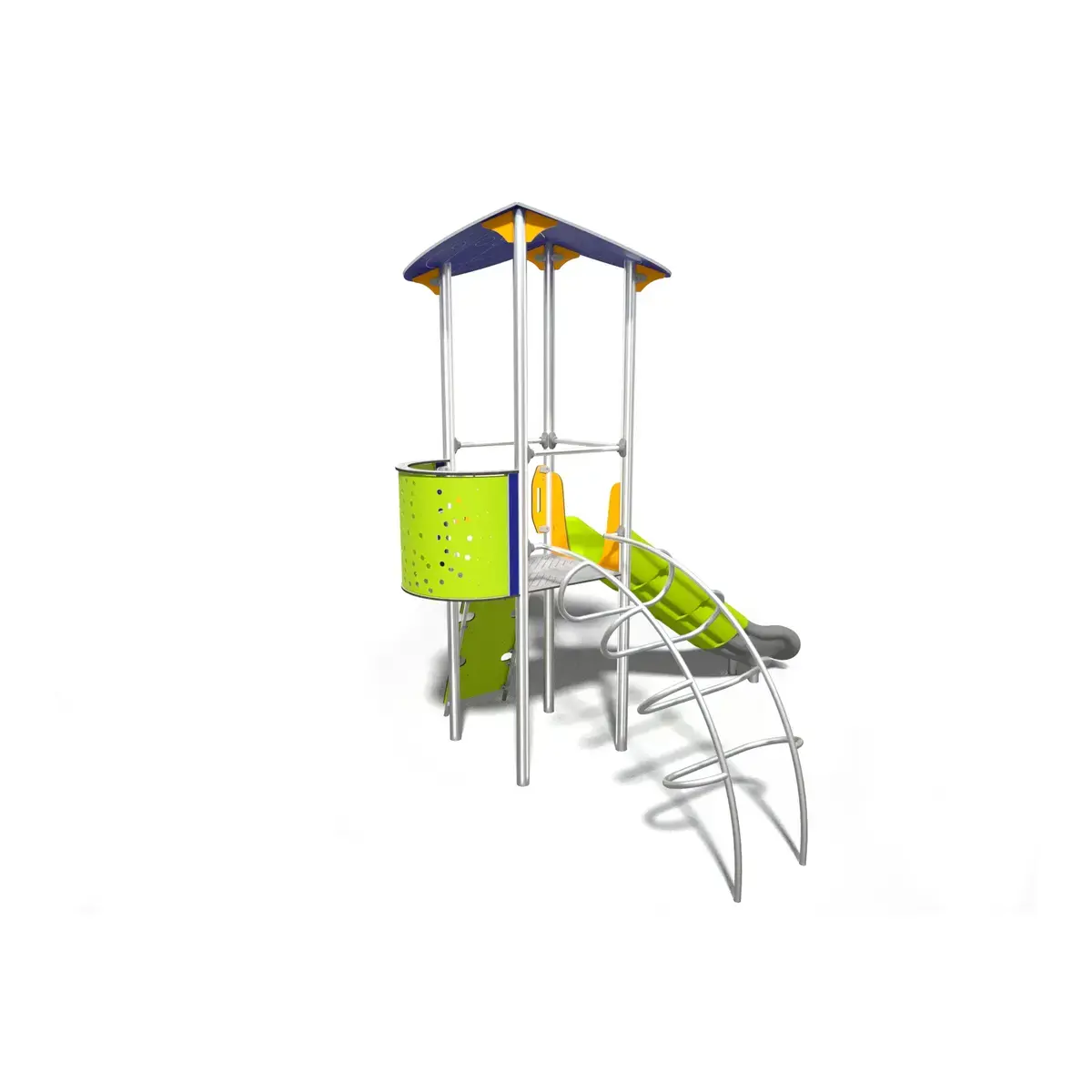 This inox play structure with slide invites tamariki to climb, balance, and slide in a modern metal design. It sparks imagination and group fun, building whanaungatanga through shared adventures while supporting hauora in vibrant community spaces.
