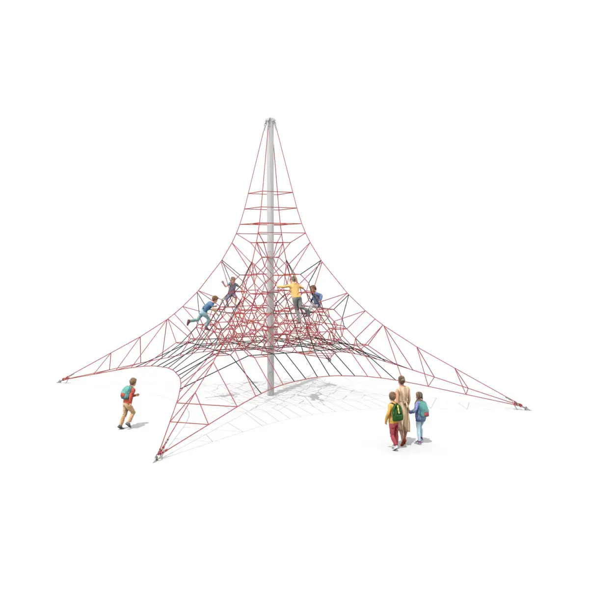 Deliver a tall climbing adventure with interconnected ropes, climbing elements and elevated platforms that promote physical fitness, spatial awareness, perseverance and confidence for many users. Made from sustainable recycled and natural materials with strong ropes for minimal maintenance, this expansive unit withstands New Zealand weather reliably. It supports inclusive play, social interaction and managed risk for multiple tamariki simultaneously, blending eco-friendly appeal into green spaces or urban playgrounds while fully meeting safety standards.