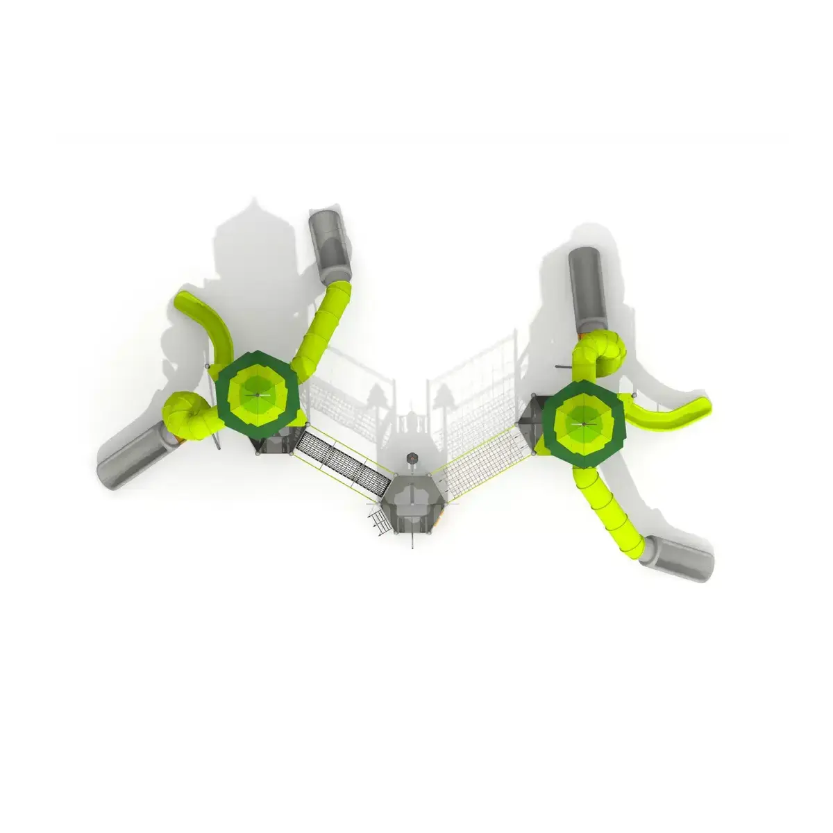 Elevate tākaro spaces with this expansive mega tower crafted for tamariki 3 to 12 and fitting 40 at once. Measuring 11.8m long by 10.6m wide and 9m tall it turns climbing walls into conquerable mountains building physical endurance perseverance and strategic planning. Tamariki hone motor skills coordination leg strength and hand grip while overcoming fears to boost confidence. Slides offer fast descents jumping spots encourage agility and shared play fosters whānau bonds through cooperation and social learning all in a setup that sparks group fun.