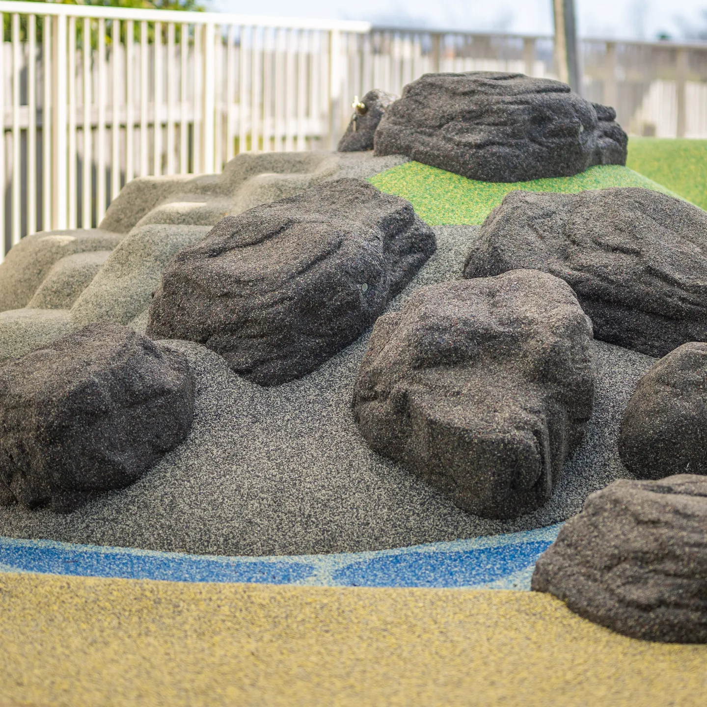 These Pour’n’Play rocks in the large boulder style bring bold scale and real challenge to playgrounds. Made from tough, recycled rubber granules, they feature irregular shapes with soft, flexible surfaces and strong UV resistance to handle Aotearoa’s sun, rain, and heavy use. Ideal for wide stepping paths, climbing features, balance activities, or adventurous obstacle setups in schools, parks, and reserves. Adjustable placement lets you vary difficulty for tamariki of different ages, building strength, coordination, and confident exploration with low maintenance.