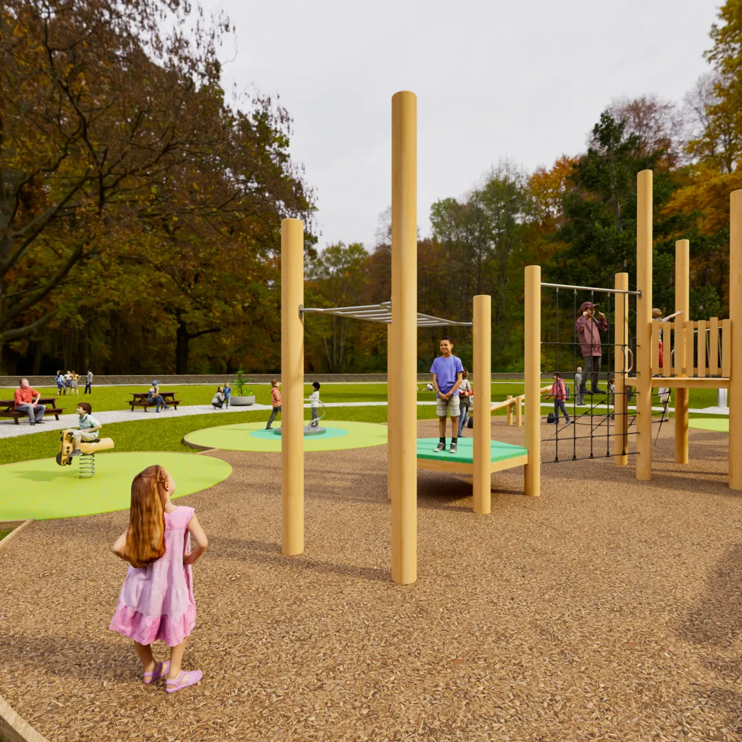 - Certified safety surfacing (combination of woodchip and Pour’n’Play rubber)