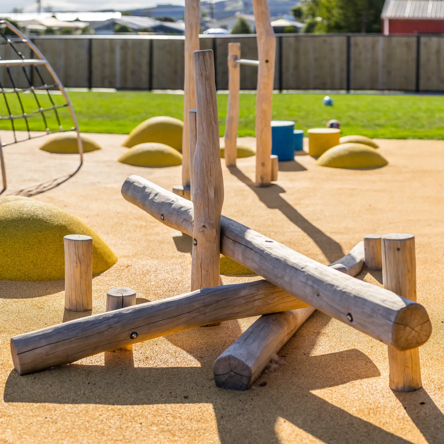 This low-level balancing feature invites children to step, hop, and balance across a series of sturdy logs arranged in a engaging layout. It builds core strength, focus, and proprioception in a fun, low-risk way. Ideal for encouraging physical activity and inclusive play, it accommodates different abilities within the 3-12 age group and allows up to 6 tamariki to participate simultaneously. Crafted from robust, sustainable timber that withstands New Zealand’s variable weather, the equipment integrates naturally into any taiao. With product dimensions of 3 x 2.5 x 1.5 m and a required safety fall zone of 6.2 x 5.8 m, it suits space-conscious sites like school grounds, council reserves, or landscape projects. Minimal fall height supports safer independent exploration while fostering a sense of achievement and whanaungatanga through shared challenges.