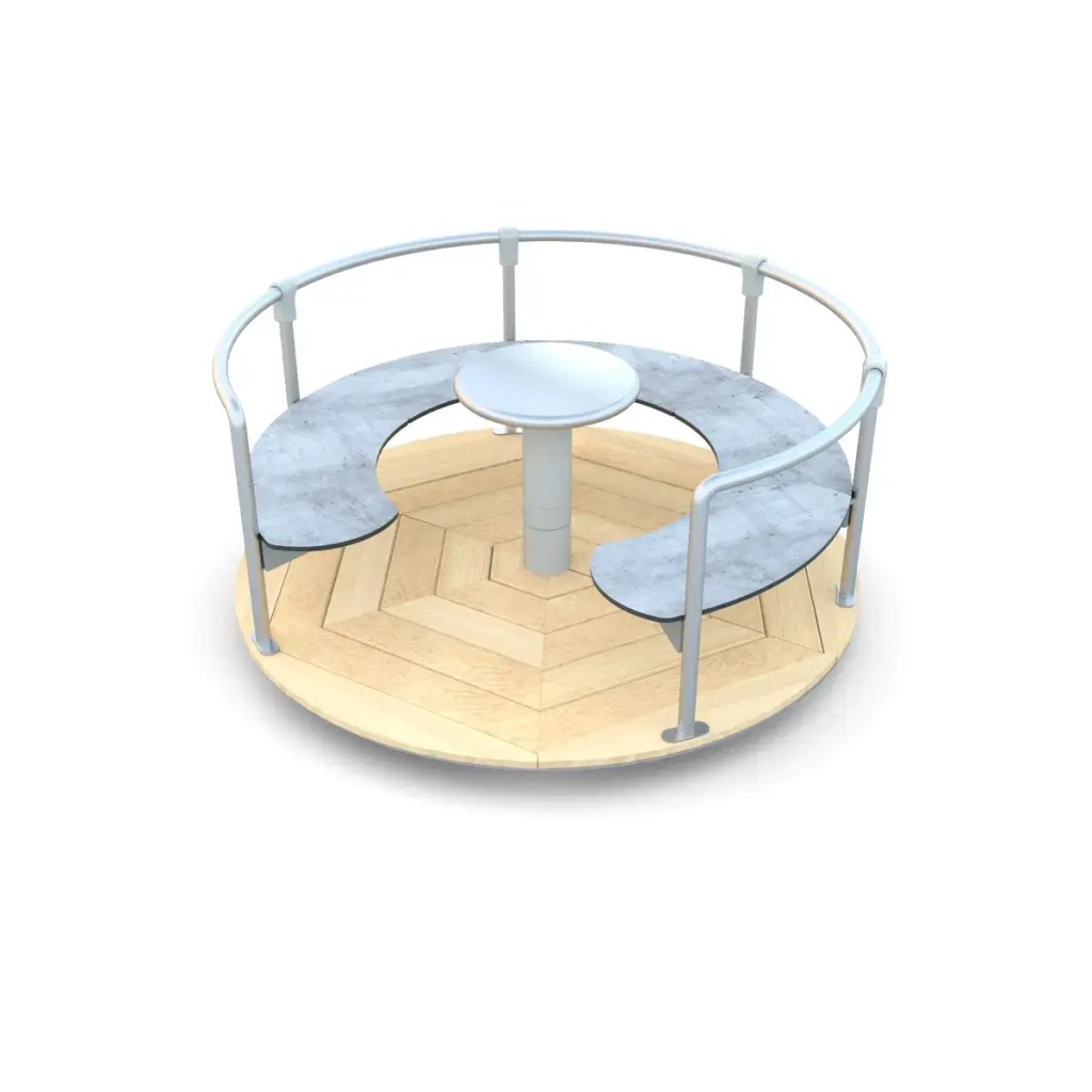 Deliver exciting spinning action with this sturdy robinía wood carousel, where tamariki grip handles and push or ride for controlled rotation and laughter. It promotes vestibular development, grip strength, teamwork, and spatial awareness as children interact and take turns in a natural design. Durable robinía wood withstands New Zealand weather and meets safety standards. Compact yet engaging footprint fits medium areas or complements larger playgrounds, helping young ones build confidence, friendships, and connection to the whenua through outdoor time with friends and whānau in any school or public setting.