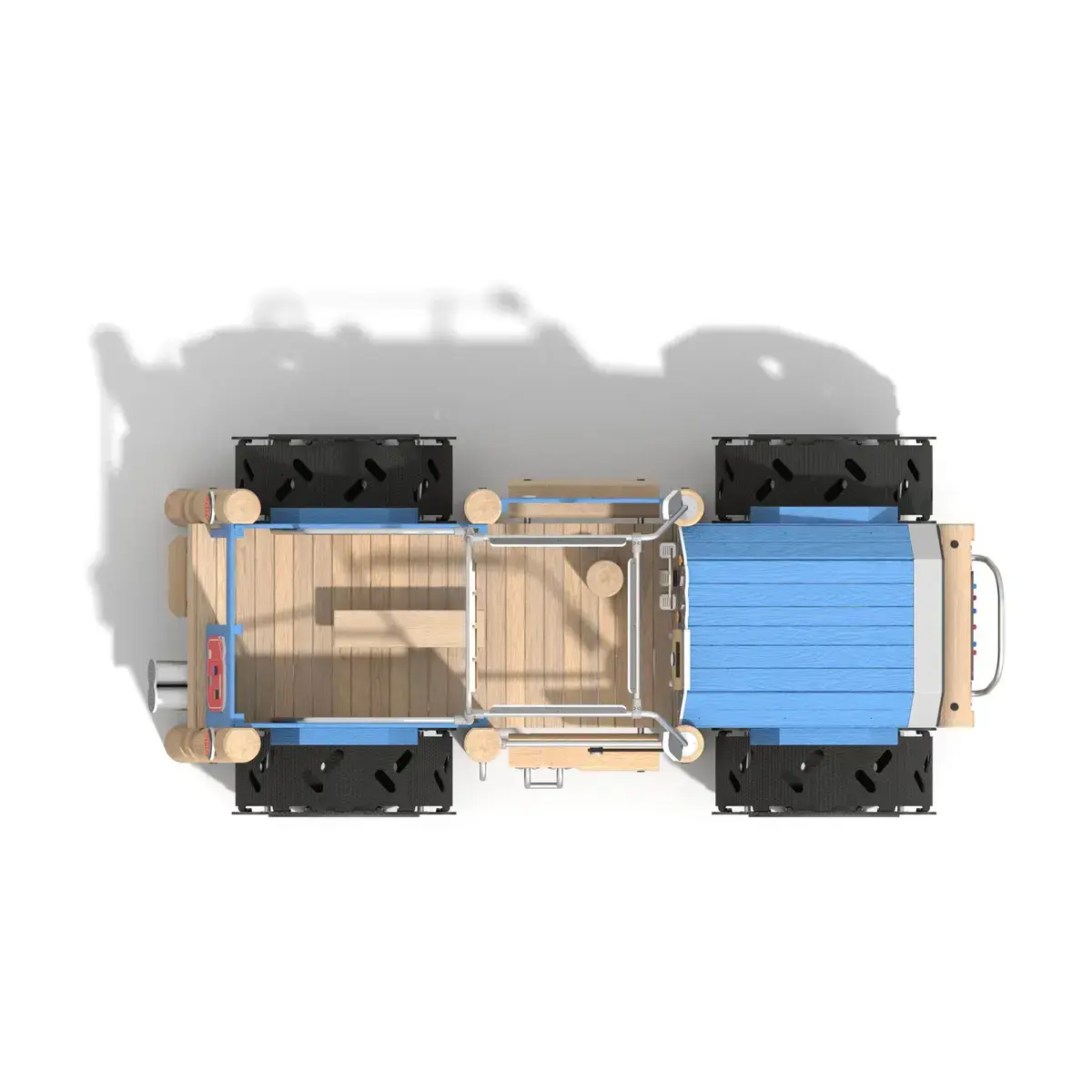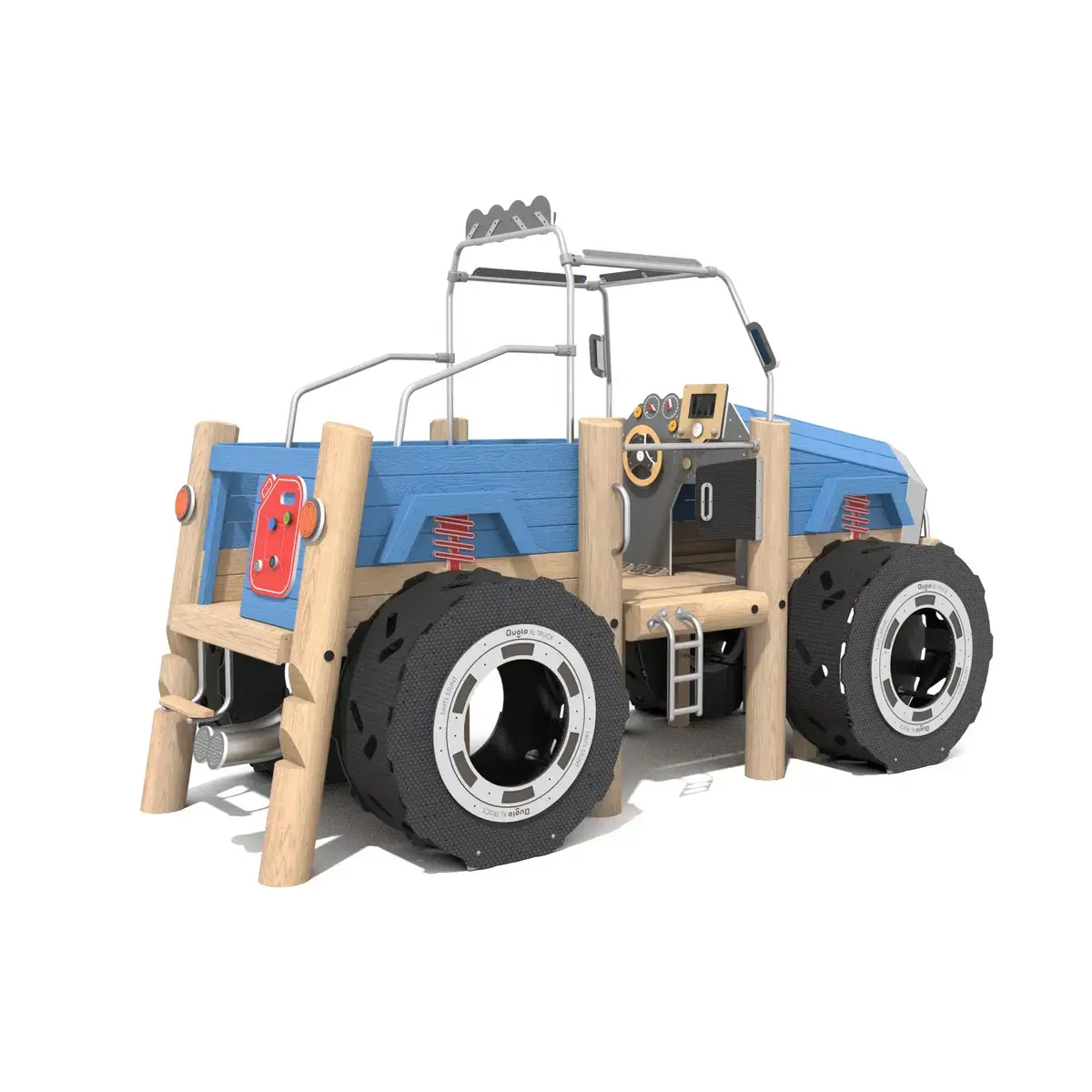 This monster truck shaped tākaro unit fuels imaginative play for tamariki aged 3 to 12, holding up to 24 users. At 4.5m long by 2.1m wide and 2.8m high, it features interactive dashboard panels, slides, ladders, and game elements like maths sliders and rotating discs. Built from robust robinia acacia wood, stainless steel, and UV stable HDPE, it suits New Zealand’s wet and sunny conditions. Meets EN 1176 standards aligning with NZ requirements.