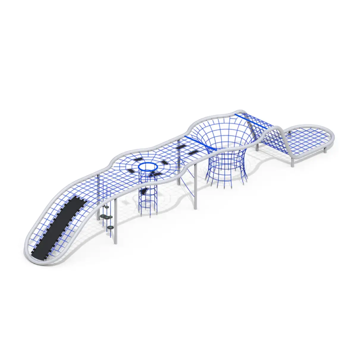 This extended rope race structure delivers thrilling, track-style play with long winding net tunnels, curves, and dynamic obstacles that push tamariki to race, build agility, and enjoy high-speed fun alone or with others. Designed for ages 6 to 12, it accommodates up to 60 users for busy, energetic sessions. Tough construction suits New Zealand’s weather, while the narrow, elongated footprint works well in linear parks, school grounds, and community areas, supporting hauora through vigorous movement, whānau play, and skill-building excitement.