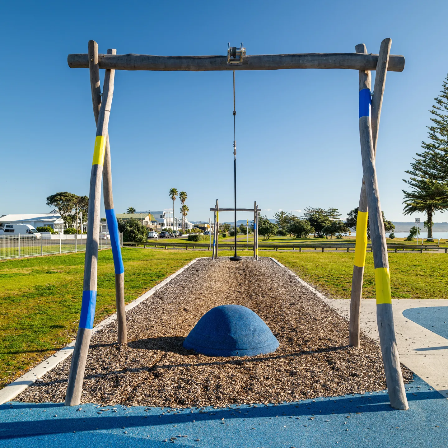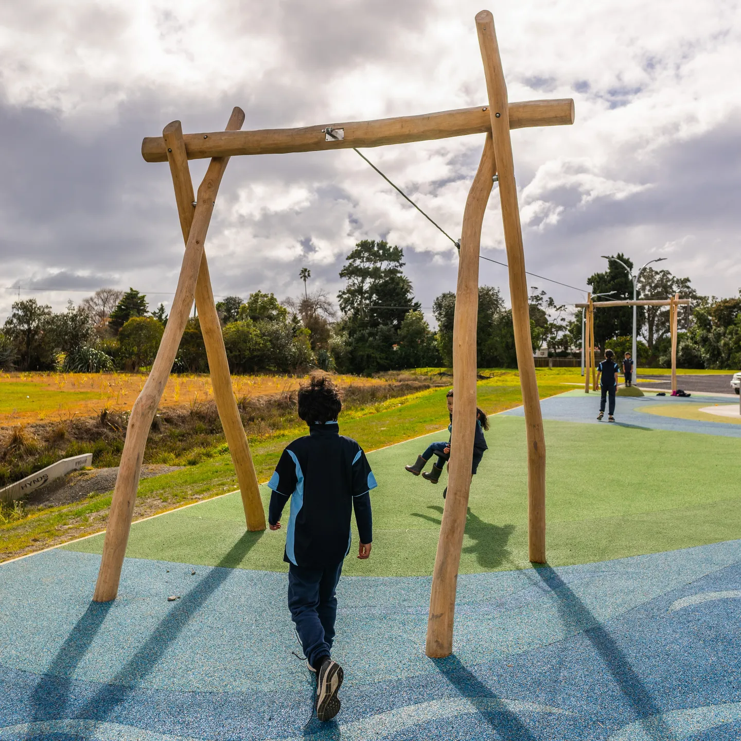 This single flying fox delivers an exciting glide experience, letting tamariki launch from a platform and soar along the cable while building confidence, balance, and a sense of adventure. Suitable for ages 3-12, it supports 1 user at a time. Built with durable components to handle New Zealand weather, it fits outdoor spaces in schools, parks, and reserves, promoting active play, hauora, and thrills in a controlled setup.