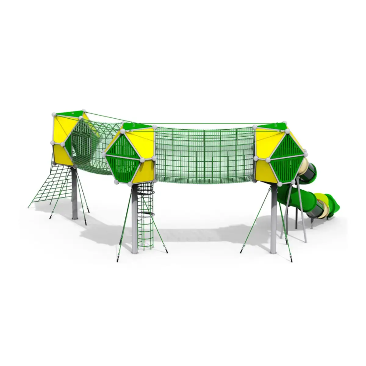 This impressive triangle house net play system invites children to climb multi-level ropes, swing, and balance at height, developing physical fitness, spatial awareness, and confidence. High-quality steel-reinforced ropes with protective cladding and sturdy connectors deliver reliability in New Zealand’s outdoor conditions with low maintenance.