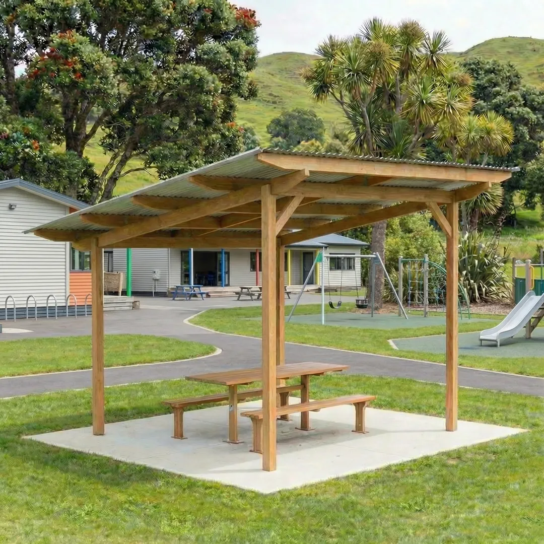 Suits a playground corner, sandpit shade, nature play area, or a quiet gathering space at the edge of a school garden. Fits within grant budgets and BoT approval processes without complication.