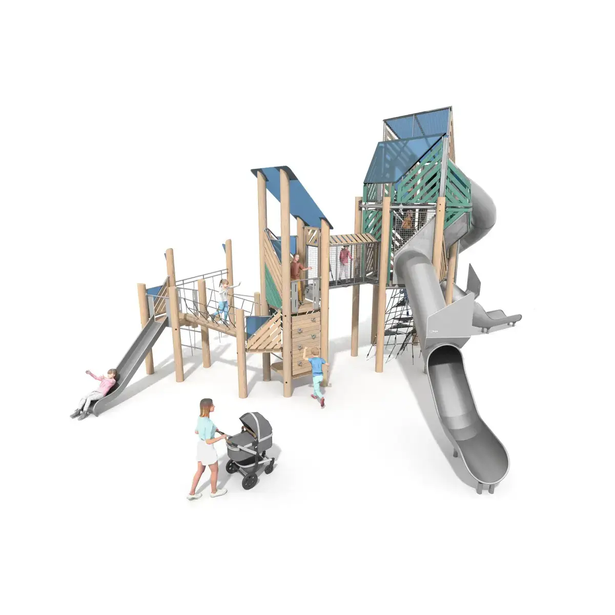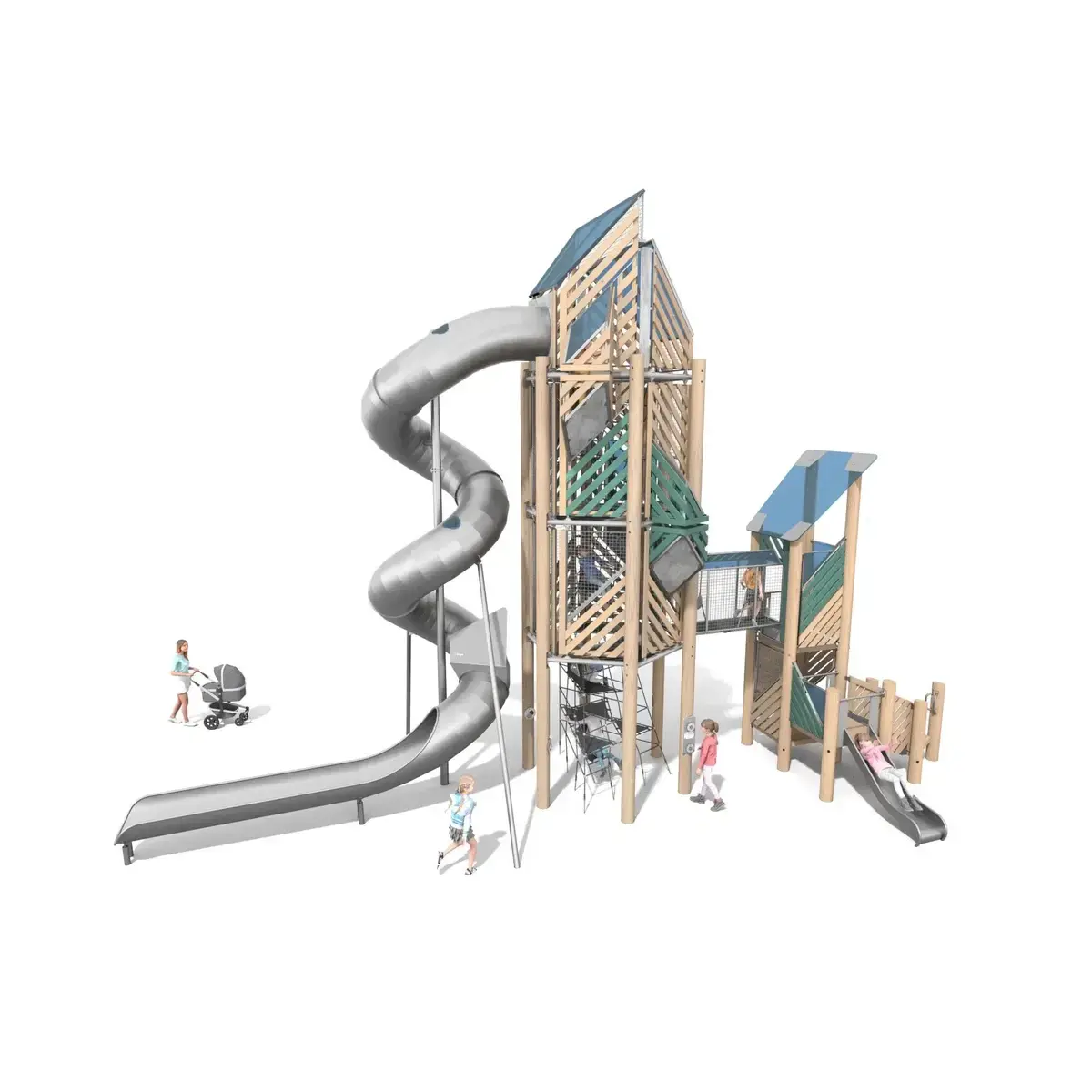 $349,412A dynamic playground tower blending climbing nets, slides, and interactive diamond passages for kids aged 3-12. Built with durable robinia wood, stainless steel, and UV-resistant polycarbonate, it supports up to 30 users across multi-level platforms up to 6.5m high. Ideal for New Zealand councils, schools, and landscapes, it promotes physical skills, social play, and emotion regulation while meeting EN 1176 safety standards. Weatherproof design ensures long-term outdoor use.