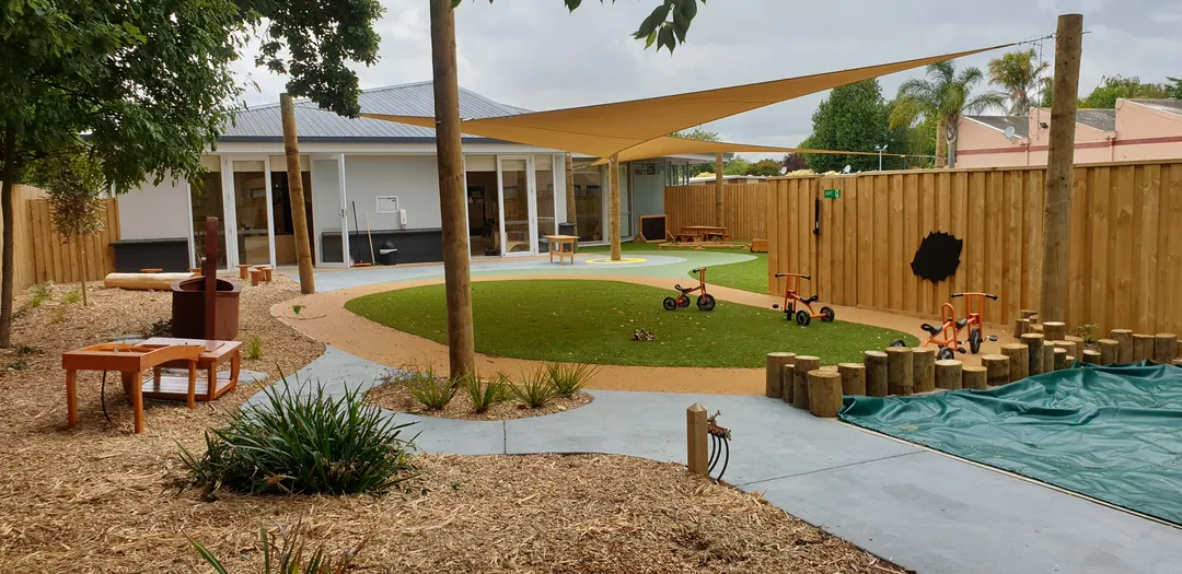 Additional play was added with balance logs being hidden throughout the gardens for children to find. Large shade sails were installed to allow for maximum use of the play area during sunny days.