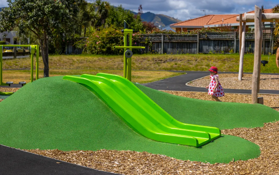 To create better connections and easy access to the playground, Creo created some new pathways to define the area. These new paths were also transformed into an additional play opportunity by creating humps that could be utilised as obstacles for a scooter track, encouraging kids to think outside the box, get creative with their play, and inspire them to stay active. By being creative with the design and layout of the playground, Creo was able to make the budget go as far as possible while still providing a fun and engaging space for the community.