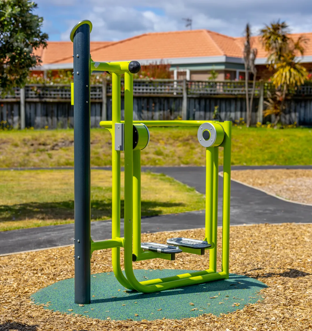 Another element to the playground that was added at the request of the council is the fitness equipment pieces. These pieces were included to provide recreational options for more mature visitors to the playground. These fitness pieces are targeted to users with a wide range of ages and abilities. Creo has created a space that is truly inclusive and welcoming to everyone in the community.