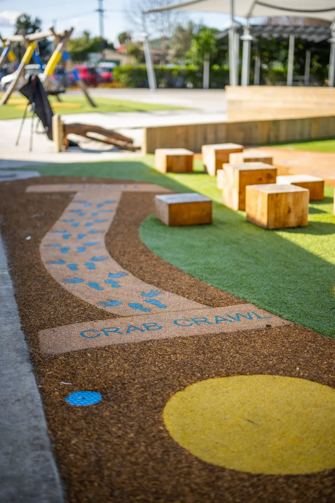 The new space is vibrant, safe, accessible, and full of play opportunities for students to explore, including large swings, a trampoline, balance play, bike tracks, and a large sandpit. The area is full of colour and texture, keeping students engaged and curious through play.