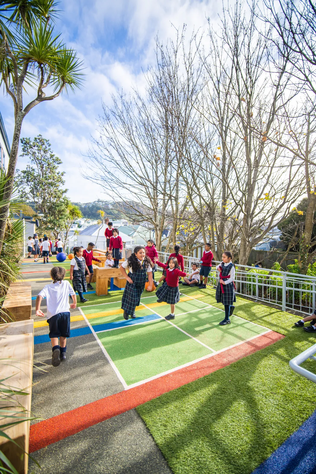 Due to its very urban setting, St Anne’s student body is made up of those living in the heart of Wellington. Principal Doreen O’Sullivan explained that a lot of the students don’t have easy access to space to play and run around, which is what prompted the school to invest in creating a play space within the school where children could be active and interact with each other through play.