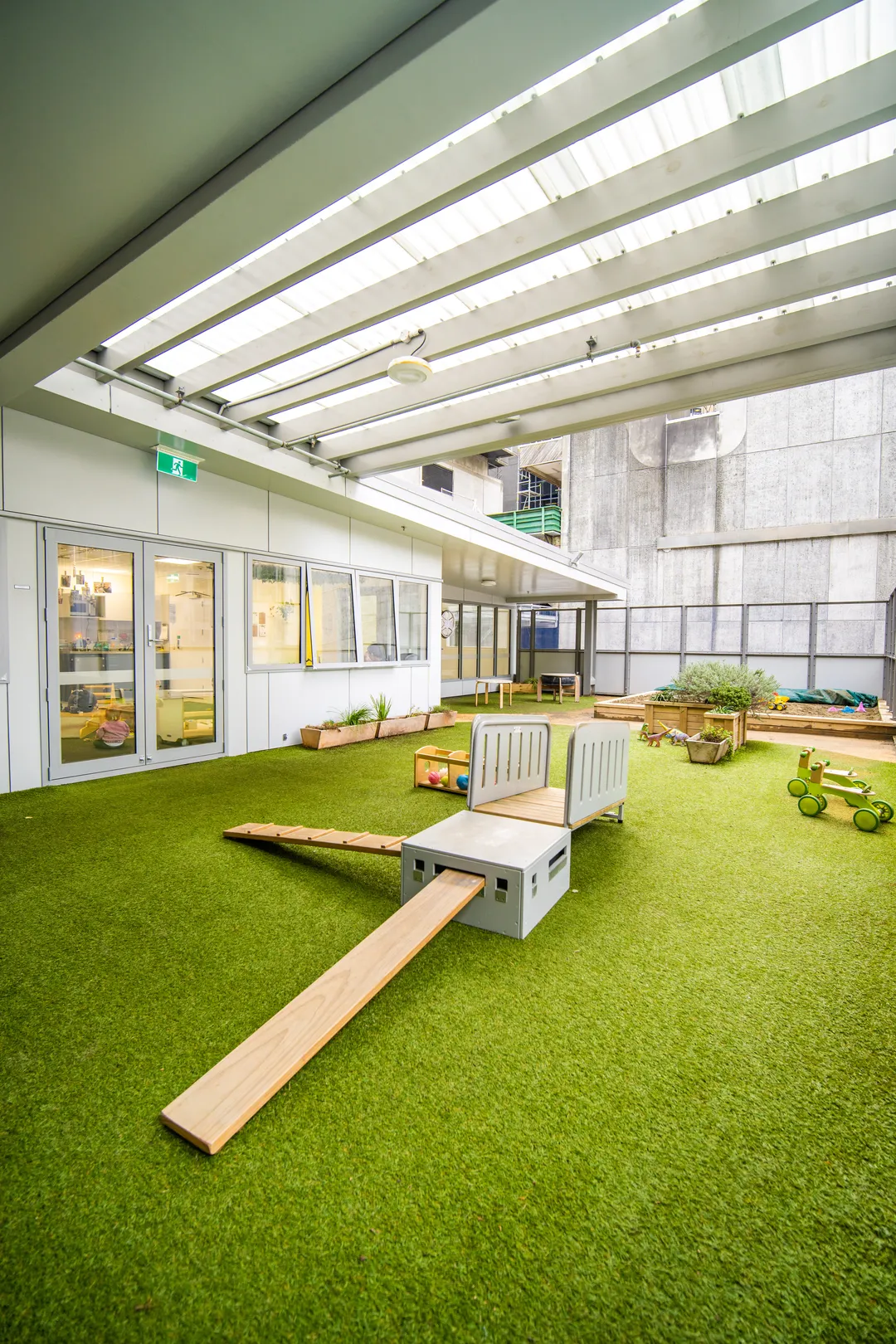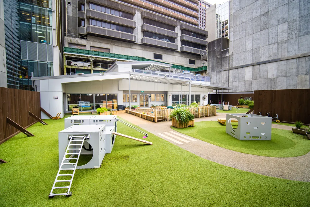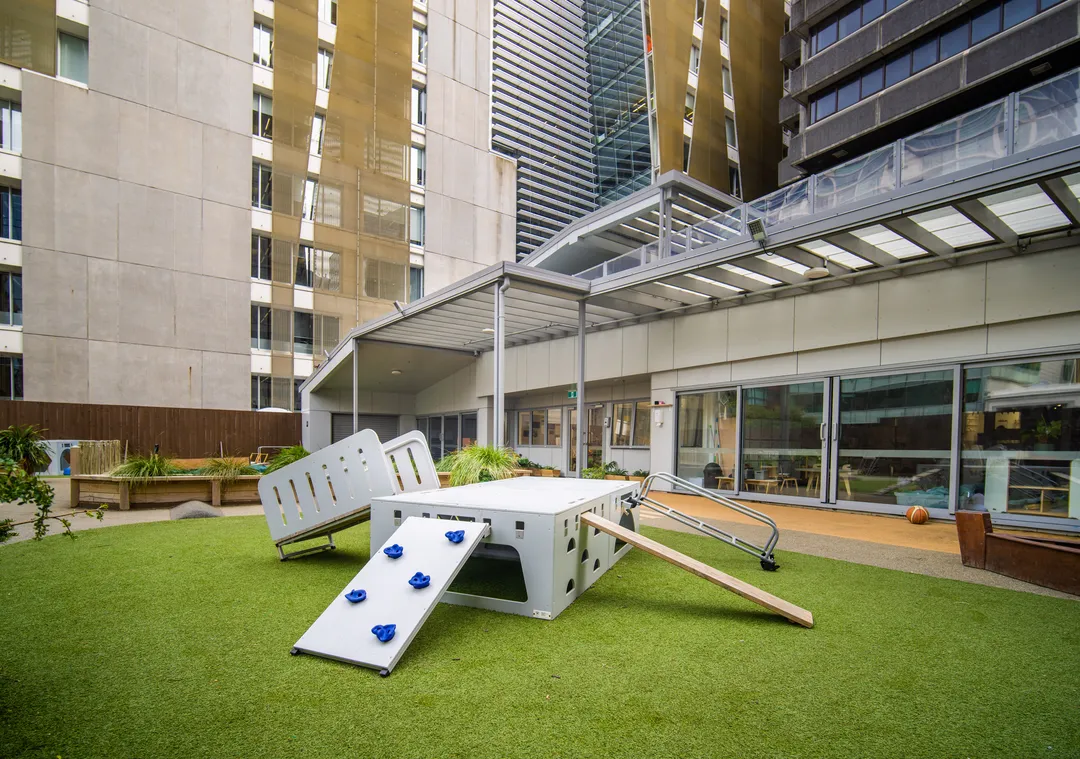 The team at Tiny Voices collaborated with Creo to create an exciting and open play space for their centre. Its rooftop location was a unique feature requiring thorough planning to create a conventional play experience full of engaging opportunities while making sure the space stayed safe, compliant, and fun.