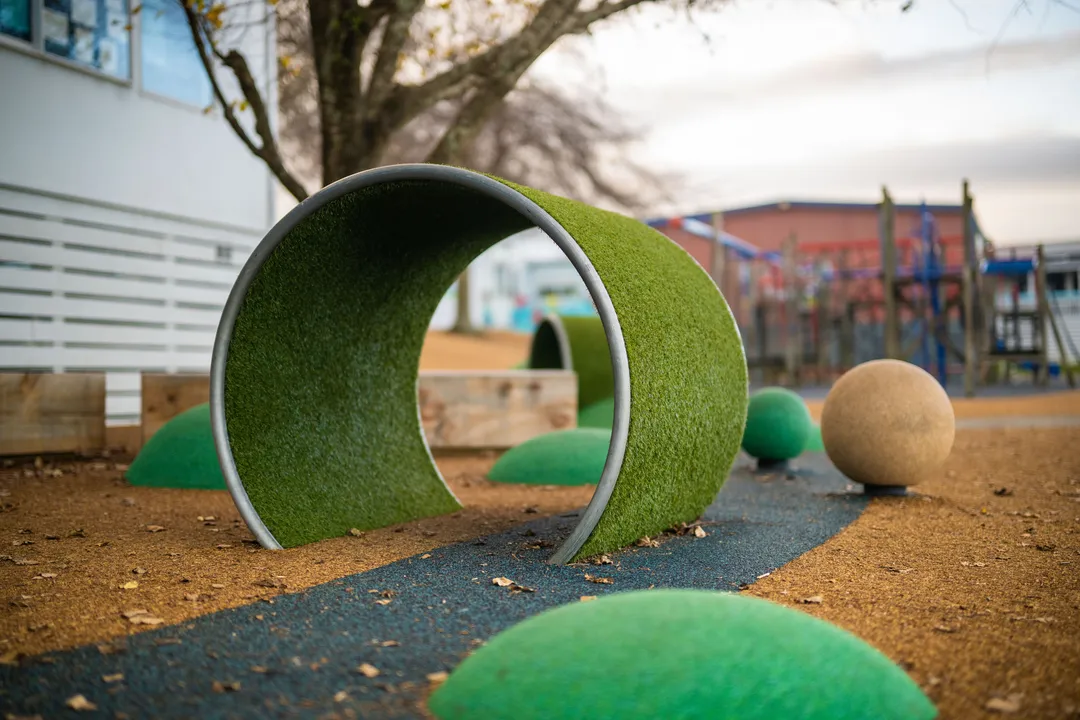 When the school began looking at updating their tired bark playground, they were looking for a way to create something different. A new kind of play space that encouraged creativity while being low maintenance and all-weather proof for their students to enjoy.
