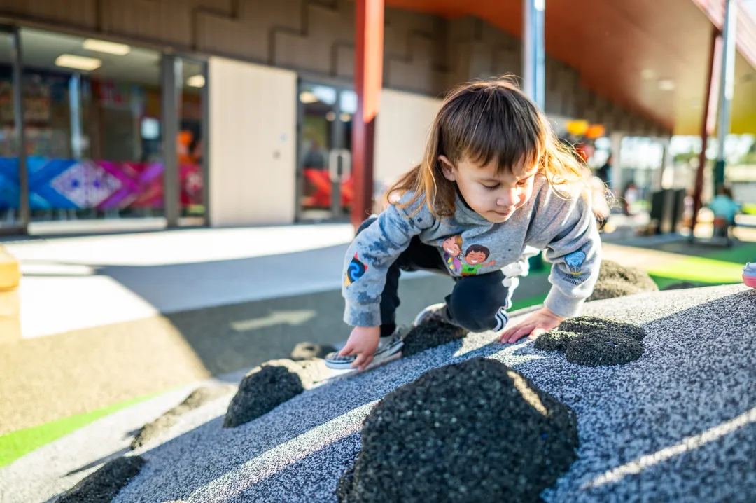 At one end, a majestic māunga (mountain) stands tall, while a flowing water feature offers tamariki a place to cool off during the summer. The sandpit has quickly become a favourite, sparking imaginative play. A special touch is the inclusion of eels in the playground design—representing the local Whakapapa. These eels aren’t just decorative; they spark conversations and help connect the tamariki with their heritage.