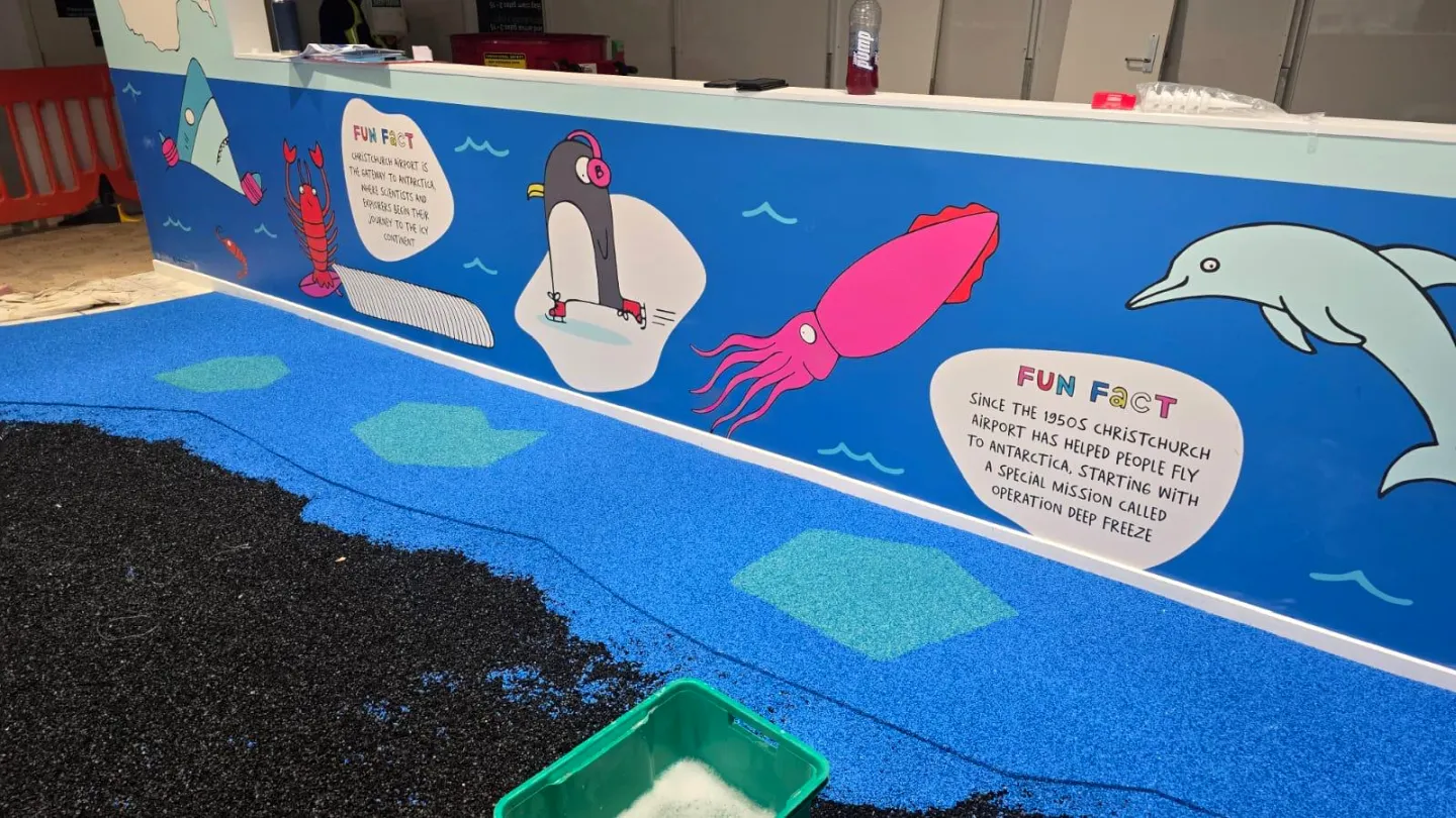The Christchurch Airport playspace is in its final stage, with the bespoke C-17 plane landmark installed and the Pour’N’Play top layer going down now. A standout space almost ready to open.
