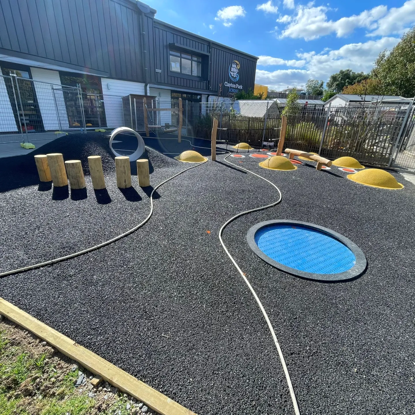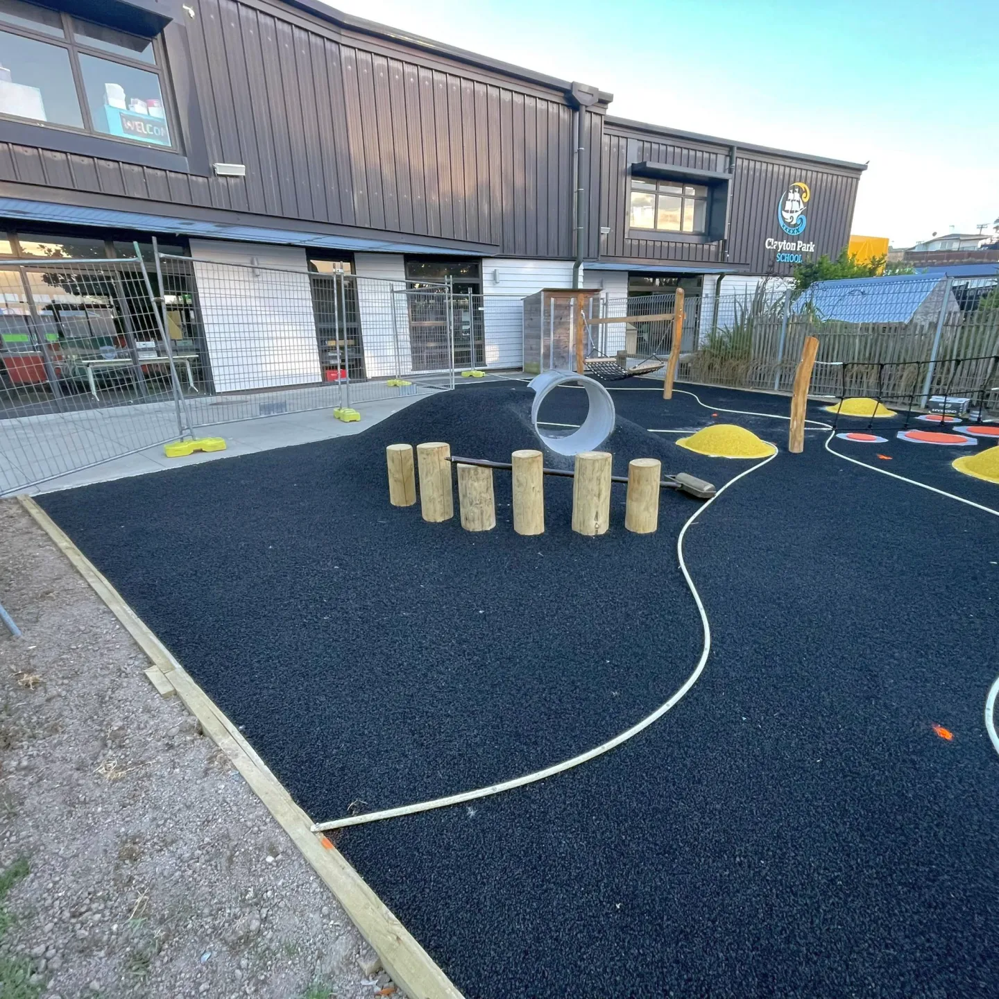 The finishing line is in sight at Clayton Park School. Pour’N’Play surfacing is the final piece bringing this project together, with the shockpad already down and the top layer placement carefully marked out and ready.