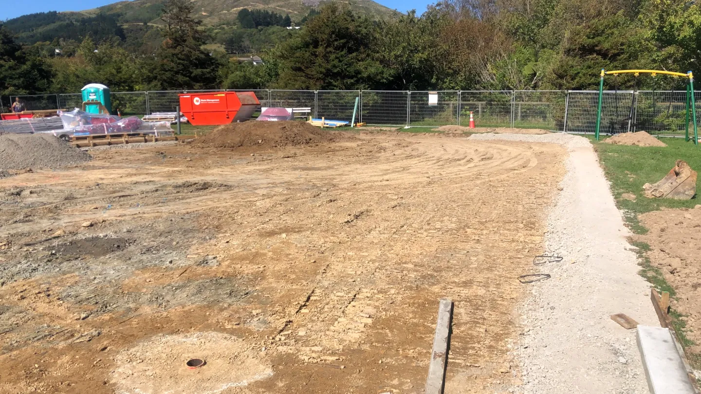 Groundwork is well underway at Duncan Park for Wellington City Council. The site is established, equipment is on the ground, and the team is moving through a significant excavation and edging scope before surfacing begins.