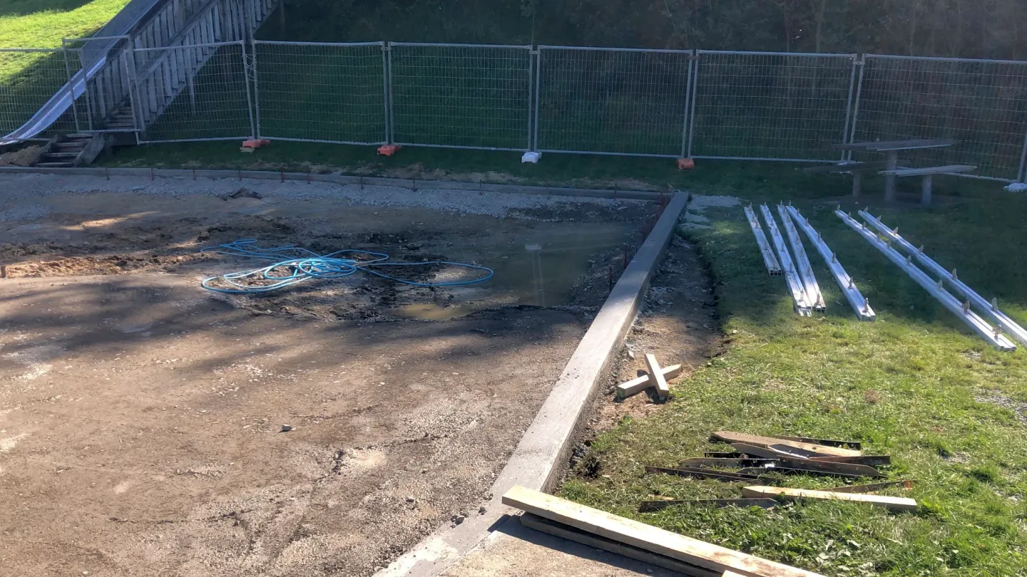 - 100m2 of poured rubber shockpad laid