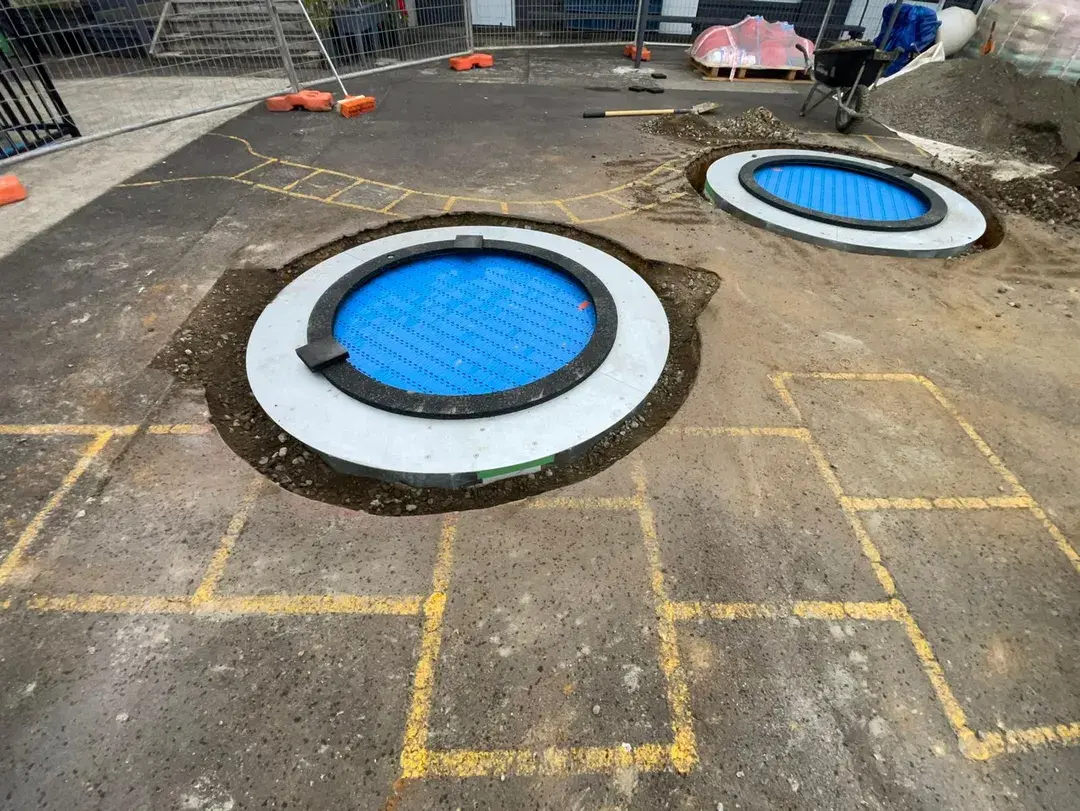 - Hole bases fully prepared for trampoline installation