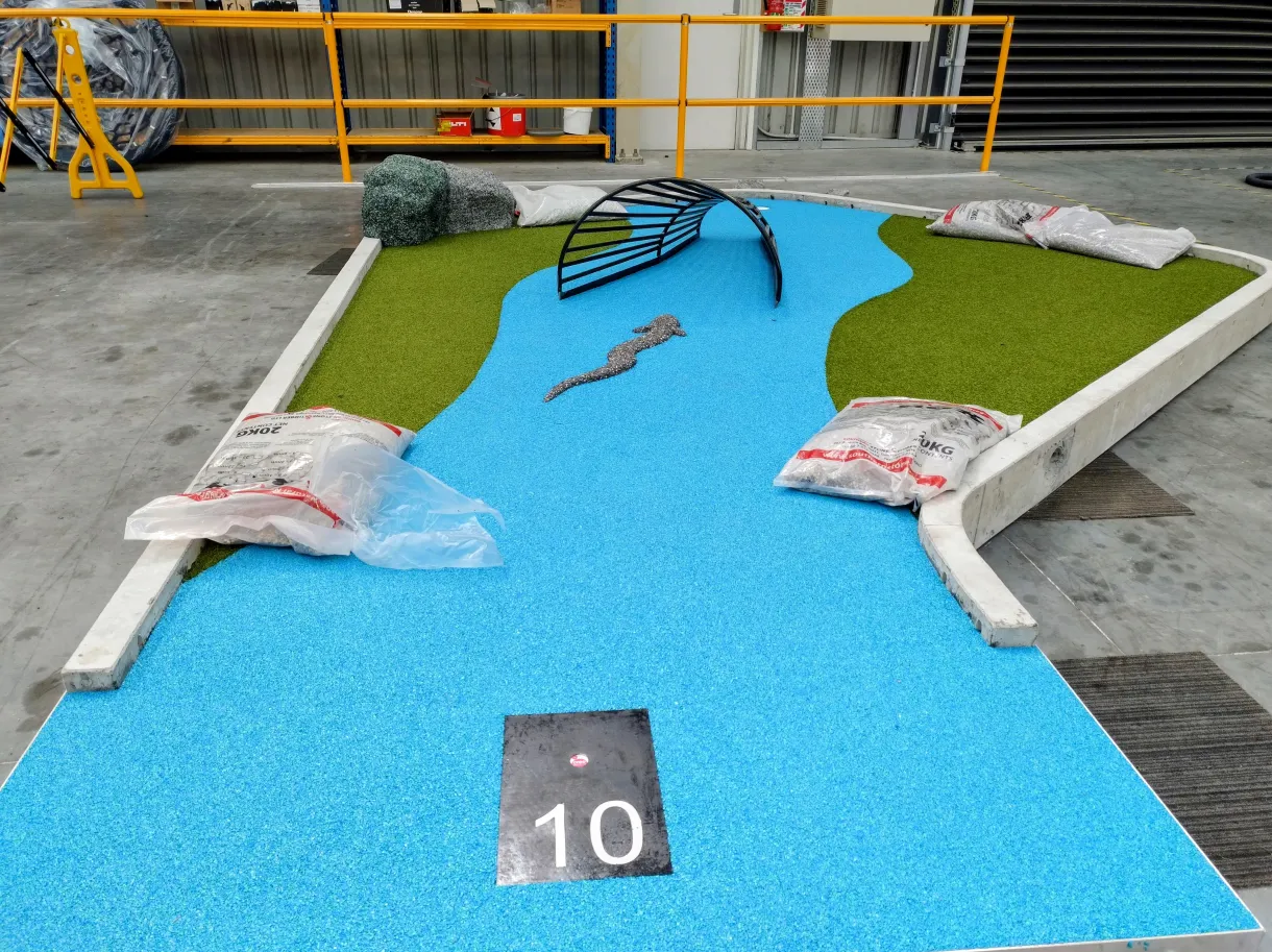 Halfway there. The Ashburton District Council’s mini golf project is now 55% complete, featuring 10 holes already on site and hole 18 at 15% being built on-site. Each hole celebrates district icons like braided rivers and Mt Hutt, built tough for 24/7 fun.